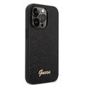 Guess PC/TPU Glitter Flakes Case with Script Metal Logo iPhone 14 Pro Compatibility - Black