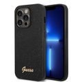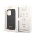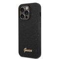Guess PC/TPU Glitter Flakes Case with Script Metal Logo iPhone 14 Pro Max Compatibility - Black