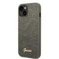 Guess PC/TPU Glitter Flakes Case with Script Metal Logo iPhone 14 Compatibility - Green