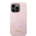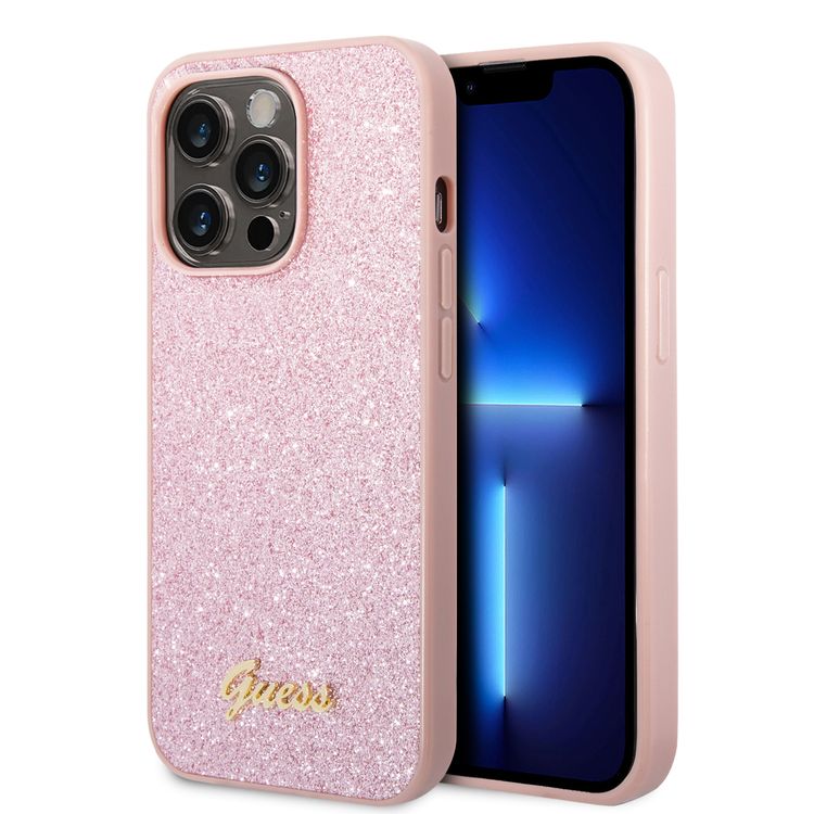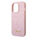 Guess PC/TPU Glitter Flakes Case with Script Metal Logo iPhone 14 Pro Compatibility - Pink