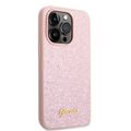 Guess PC/TPU Glitter Flakes Case with Script Metal Logo iPhone 14 Pro Max Compatibility - Pink