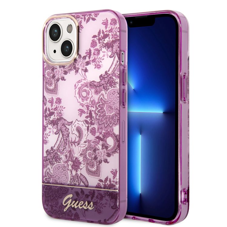 Guess PC/TPU IML Case With Double Layer Electroplated Camera Outline & Toile De Jouy - iPhone 14 - Fuchsia