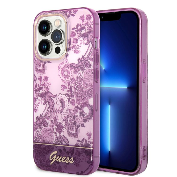 Guess PC/TPU IML Case With Double Layer Electroplated Camera Outline & Toile De Jouy - iPhone 14 Pro Max - Fuchsia
