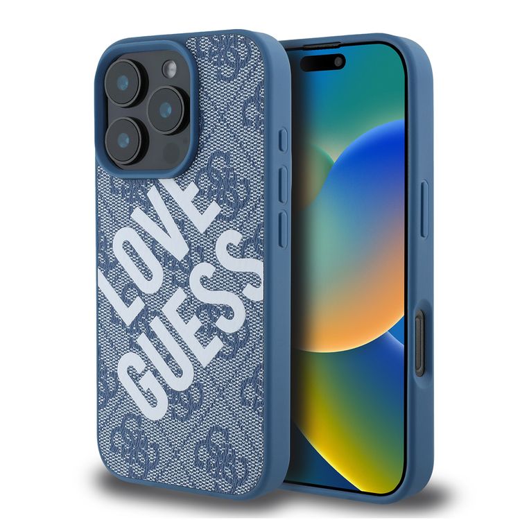 Guess PU 4G Hard Case with Big Love Guess Logo For iPhone 16 Pro Max, High Quality Material, Lightweight, Easy Snap-on - Blue