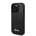 Guess PU Croco Hard Case with Script Logo for iPhone 16 Pro, Lightweight, High-Quality Material, Easy Snap-on - Black