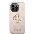 Guess PU Leather 4G Classic and Stylish Case with Big Metal Logo iPhone 14 Pro Compatibility - Pink