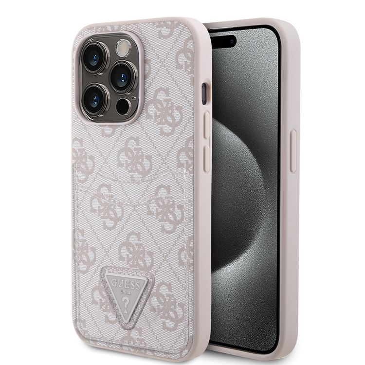 Guess PU Leather Case with Double Card Slot 4G Double Triangle Logo - Pink - iPhone 15 Pro Max