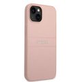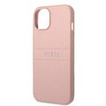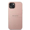 Guess PU Leather Saffiano Case with Metal Logo & Hot Stamp Stripes iPhone 14 Plus Compatibility - Pink