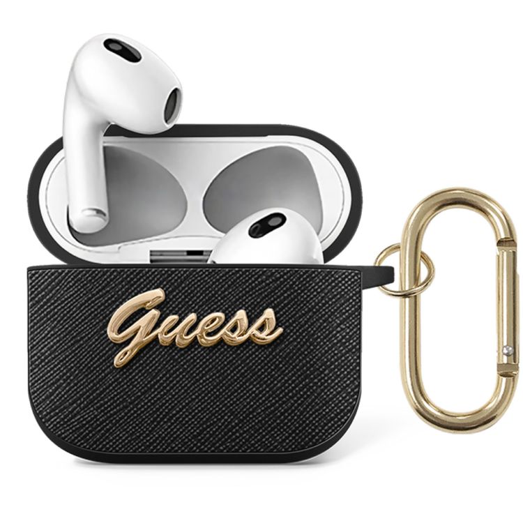 Guess PU Saffiano Case with Script Metal Logo for Airpods 3 - Black