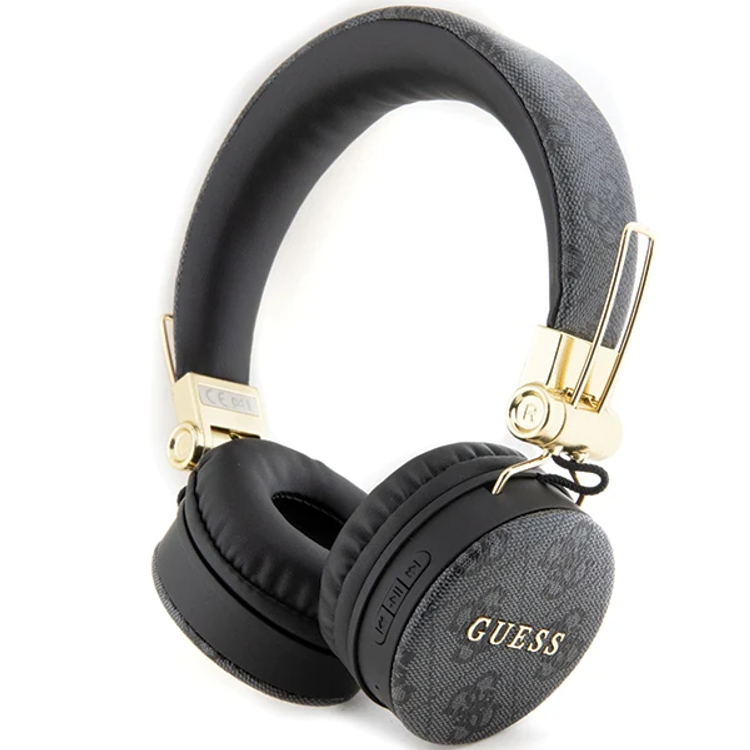 Guess Wireless Headphones 4G PU Leather with Metal Logo - Black