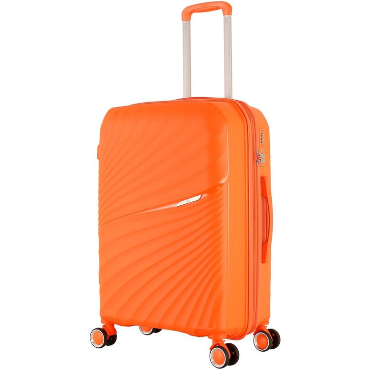 H.T Luggage Bag, Hard Case Polypropylene (PP) Material, Expandable, Telescopic Handle, Scratch Resistant, TSA Lock, Large Case Size - Orange