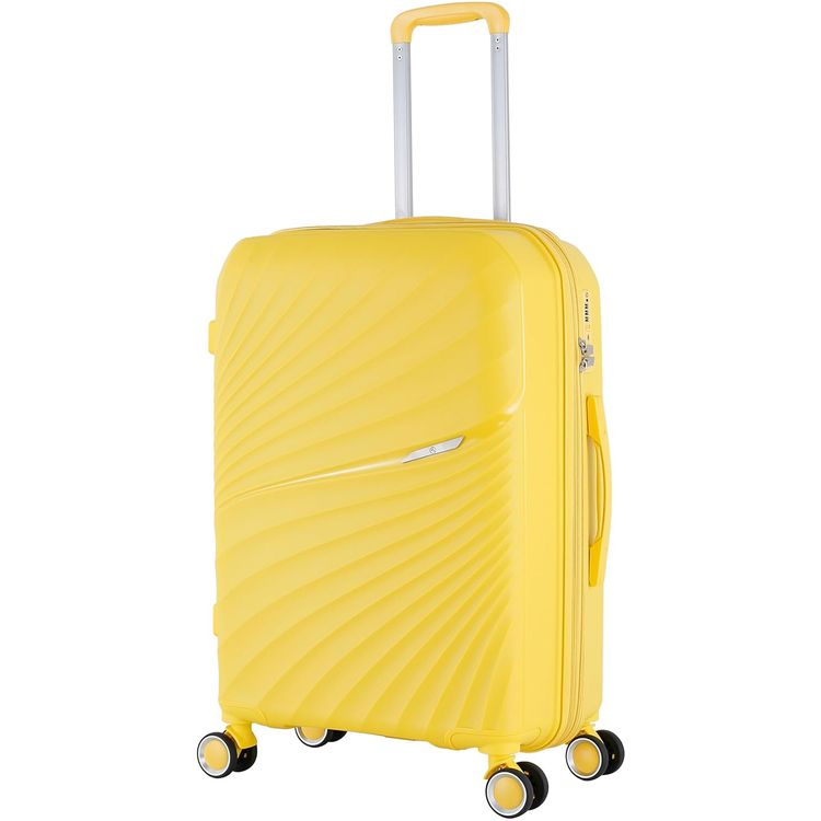 H.T Luggage Bag, Hard Case Polypropylene (PP) Material, Expandable, Telescopic Handle, Scratch Resistant, TSA Lock, Medium Case Size - Yellow