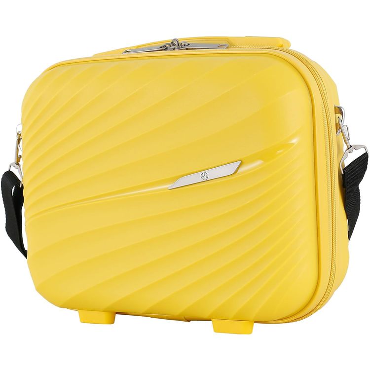 H.T Luggage Bag, Hard Case Polypropylene (PP) Material, Expandable, Telescopic Handle, Scratch Resistant, TSA Lock, Vanity Case Size - Yellow