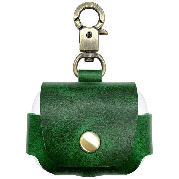 iGuard by iGuard by Porodo Leather Hang Case for Airpods Pro, Shock Resistant, Scratches Resistant, Compatible with Wireless Chargers, Green