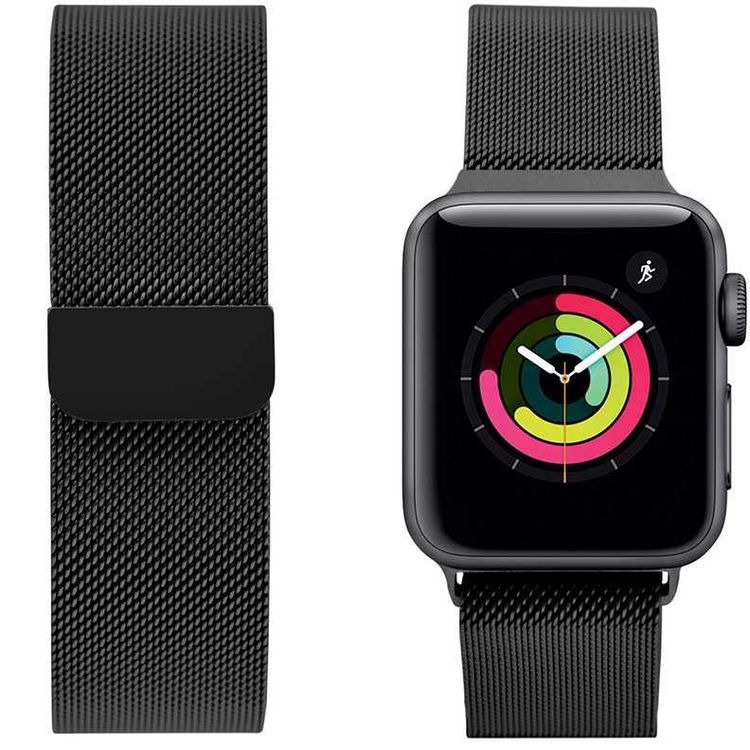 iGuard by Porodo Metal Mesh Band for Smart Watch, Fit & Comfortable Replacement Wrist Band, Adjustable Straps Compatible for Apple Watch 44mm / 42mm - Black