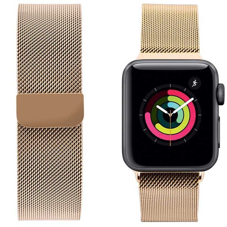 iGuard by Porodo Metal Mesh Band for Smart Watch, Fit & Comfortable Replacement Wrist Band, Adjustable Straps Compatible for Apple Watch 44mm / 42mm - Gold