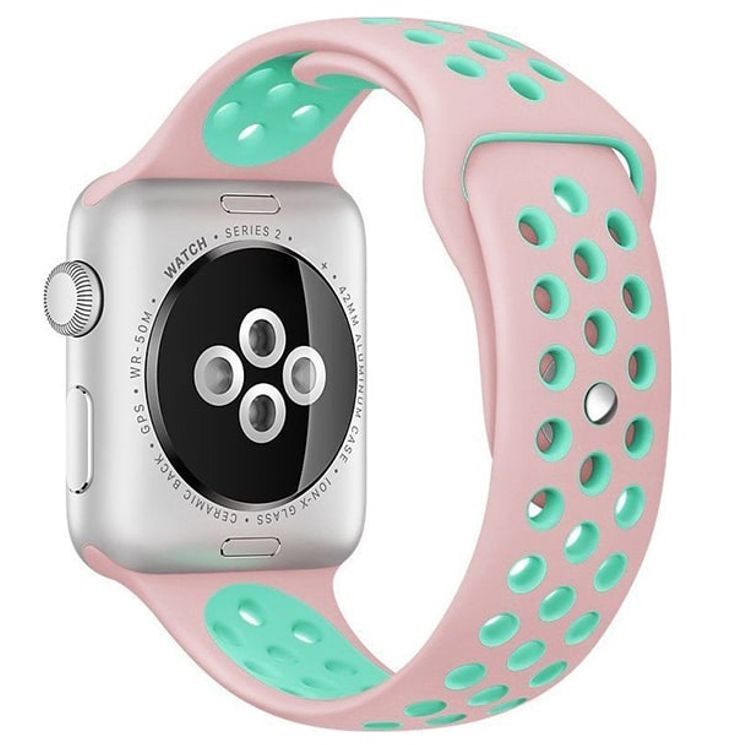 iGuard by Porodo Nike Watch Band for Smart Watch, Fit & Comfortable Replacement Wrist Band, Adjustable Straps Compatible for Apple Watch 44mm / 42mm - Pink/Green