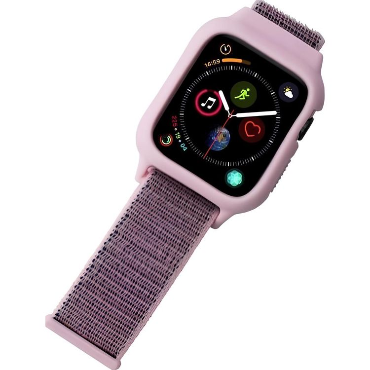 iGuard by Porodo Nylon Watch Band with Shockproof Case, Fit & Comfortable Replacement Wrist Band, Adjustable Straps Compatible for Apple Watch 44mm/42mm - Pink