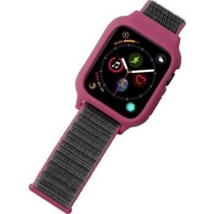 iGuard by Porodo Nylon Watch Band with Shockproof Case, Fit & Comfortable Replacement Wrist Band, Adjustable Straps Compatible for Apple Watch 44mm/42mm - Black / Red