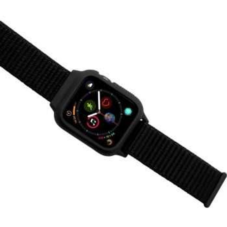 iGuard by Porodo Nylon Watch Band with Shockproof Case, Fit & Comfortable Replacement Wrist Band, Adjustable Straps Compatible for Apple Watch 40mm/38mm - Black