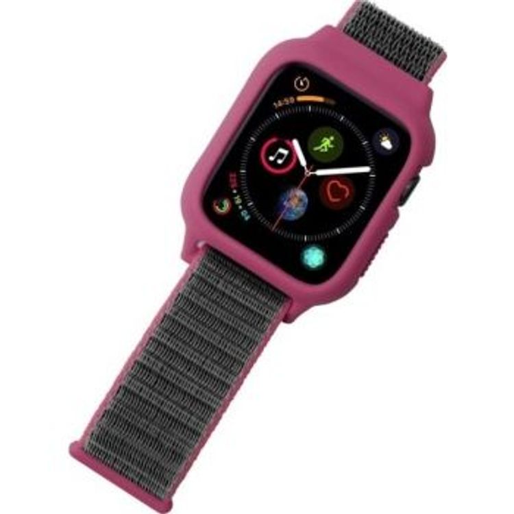 iGuard by Porodo Nylon Watch Band with Shockproof Case, Fit & Comfortable Replacement Wrist Band, Adjustable Straps Compatible for Apple Watch 38mm/40mm - Black / Red