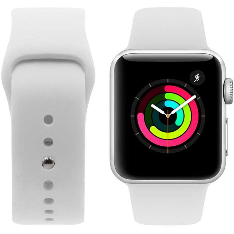 iGuard by Porodo Silicone Watch Band, Fit & Comfortable Replacement Wrist Band, Adjustable Straps Compatible for Apple Watch 44mm / 42mm - White