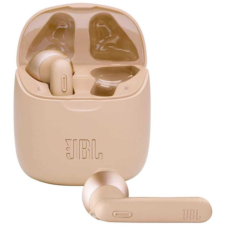JBL T225 True Wireless Earbud Headphones, Pure Bass Sound, Bluetooth, 25-hours Battery Life, Dual Connect, Native Voice Assistant - Gold