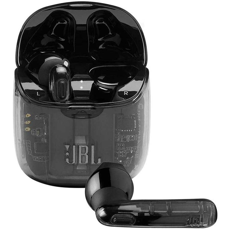 JBL T225 True Wireless Earbud Headphones, Pure Bass Sound, Bluetooth, 25-hours Battery Life, Dual Connect, Native Voice Assistant - Ghost Black