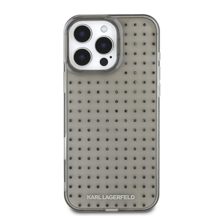 Karl Lagerfeld IML Transparent Hard Case with Allover Studs for iPhone 16 Pro, Printed Logo Design - Clear Black