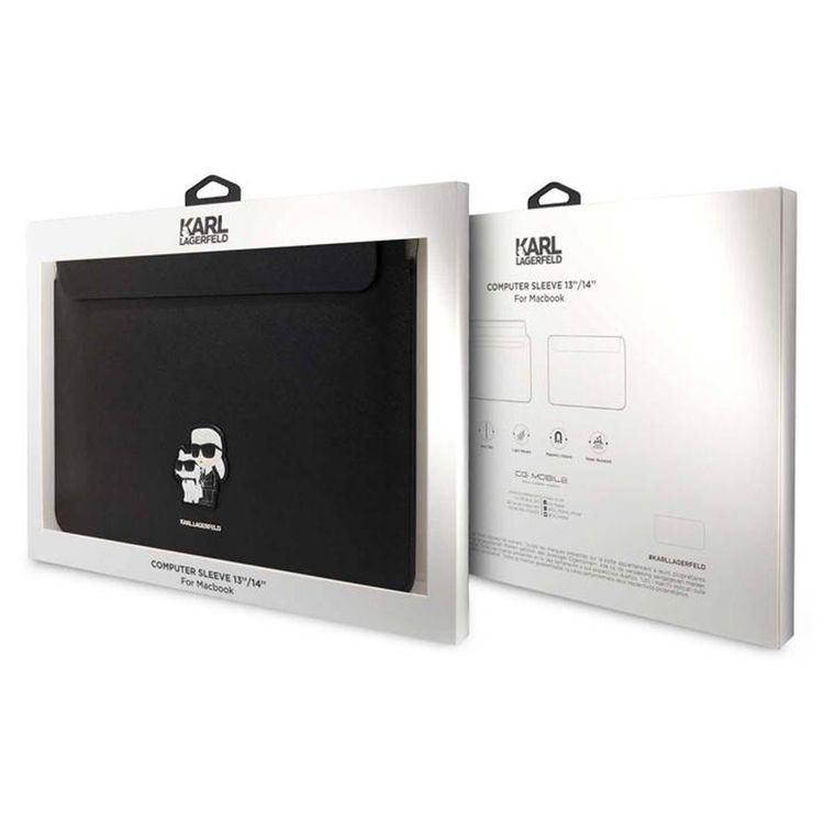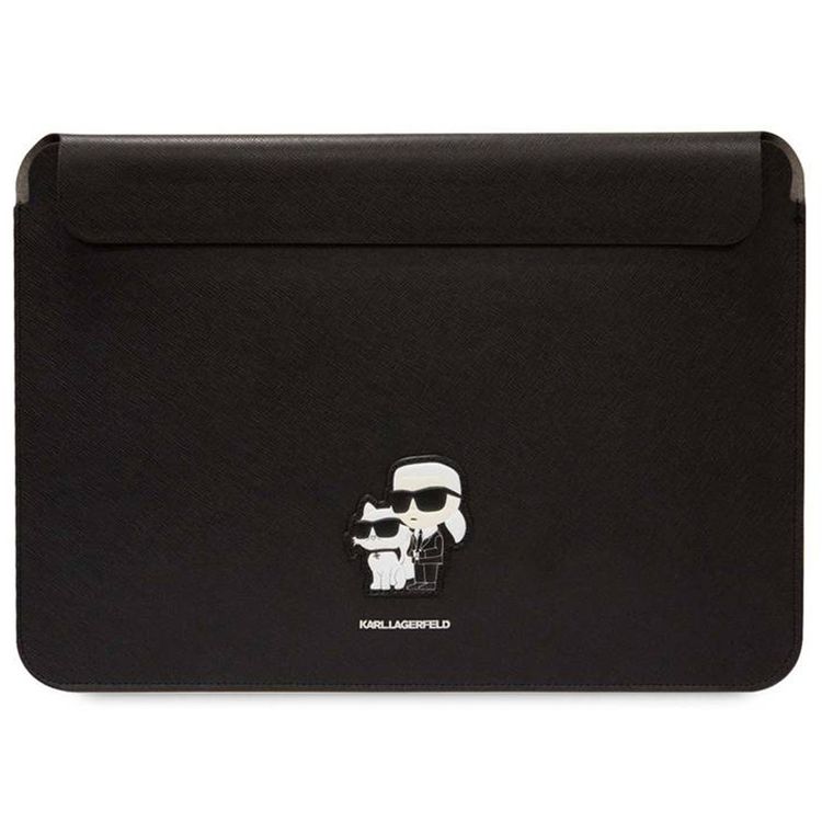 Karl Lagerfeld Saffiano Laptop Sleeve for Computer 13" / 14" with Karl & Choupette NFT Logo, Genuine Leather Material, Water-Resistant, Magnetic Lock - Black