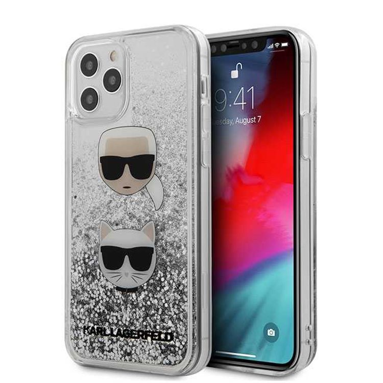 Karl Lagerfeld Liquid Glitter Case Karl and Choupette Heads for Apple iPhone 12 / 12 Pro (6.1 ) - Silver