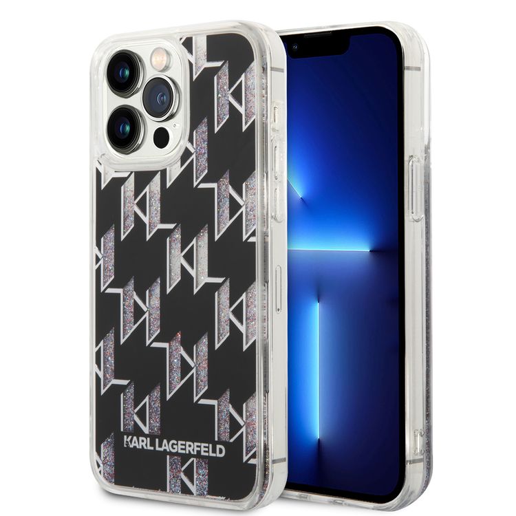 Karl lagerfeld Liquid Glitter Case Monogram Pattern & Multicolor Glitter iPhone 14 Pro Max Compatibility - Black