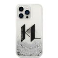 Karl Lagerfeld Liquid Glitter Case for 14 Pro Max, Big KL Logo, Drop & Bumper Protection, Anti-Scratch, Silicone Material, Slim Profile, Easy Snap-On - Silver