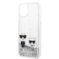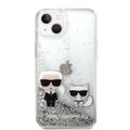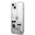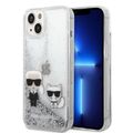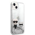 Karl Lagerfeld Liquid Glitter Silicone Case Karl and Choupette Protector iPhone 14 Compatibility - Silver