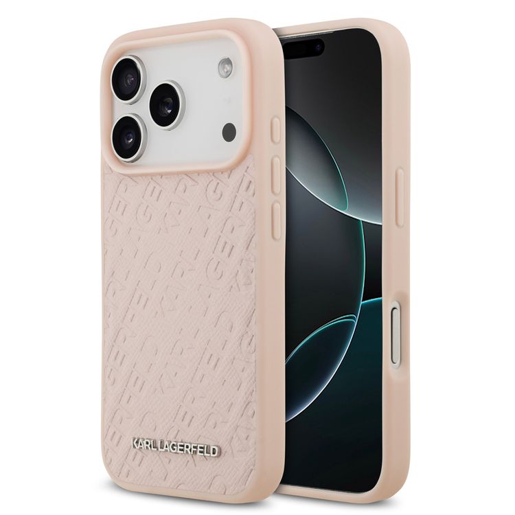 Karl Lagerfeld MagSafe Full Wrapped PU Leather Case with Karl Grain for iPhone 17 Pro Max, Slim Profile, Drop Protection, Easy Snap-On, Sustainable Packaging, Comfortable Grip, Lightweight Design - Pink