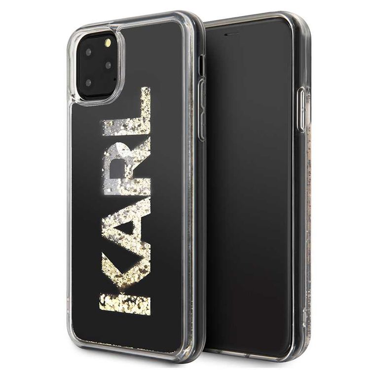 Karl Lagerfeld PC / TPU Transpareant Case with Gold Glitter for Apple iPhone 11 Pro Max - Black