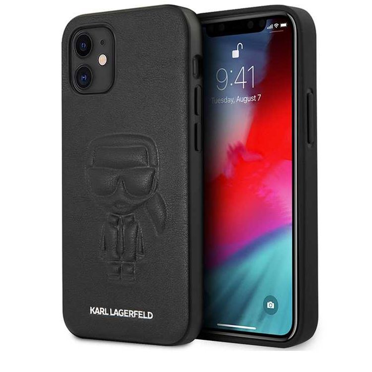 Karl Lagerfeld PU Leather Case Ikonik Outline Embossed and Metal Logo for Apple iPhone 12 Mini (5.4 ) - Black