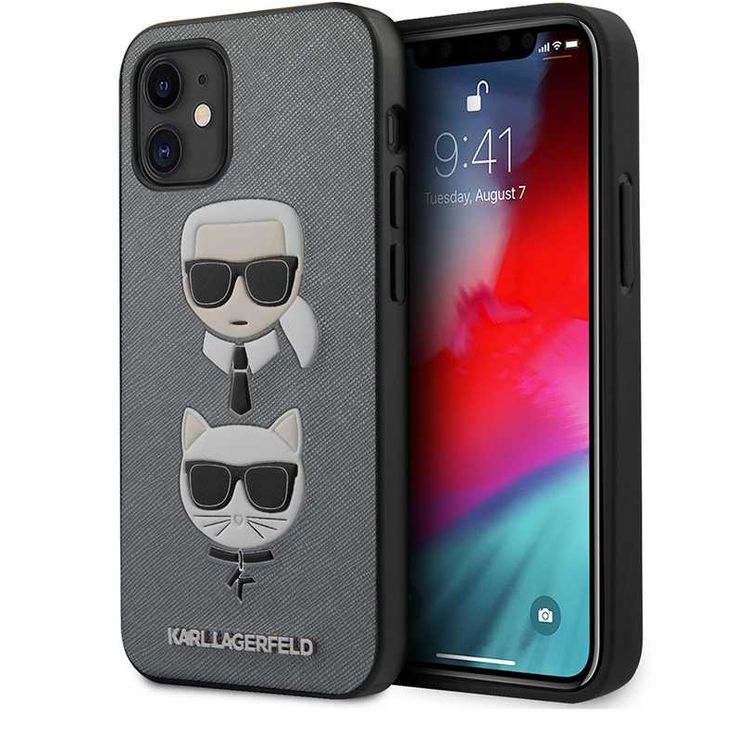 Karl Lagerfeld PU Saffiano Case with Embossed Karl and Choupette Heads for Apple iPhone 12 Mini (5.4 ) - Silver