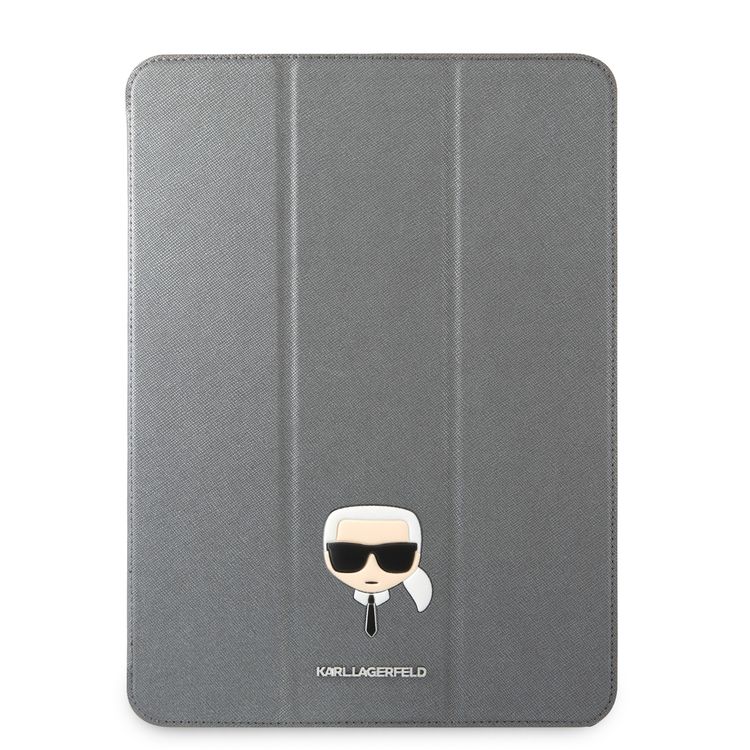 Karl Lagerfeld PU Saffiano Karl Head Folio Case for iPad 12.9" - Silver