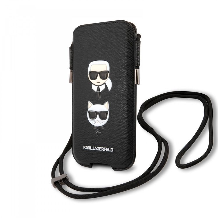 Karl Lagerfeld PU Saffiano Pouch With Karl & Choupette`s Head Large - Black