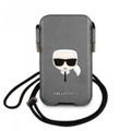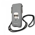 Karl Lagerfeld PU Saffiano Pouch With Karl`s Head Medium - Silver