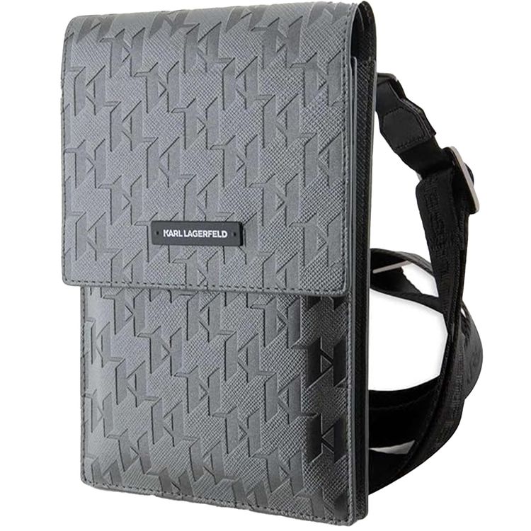 Karl Lagerfeld Saffiano Leather Phone Pouch with Built-in Card Slots, TPU, Leather & Nylon Materials, 2 Interior Pockets, Crossbody Bag, Clutch & Shoulder Bag Styling Options - Black