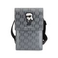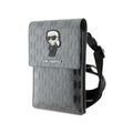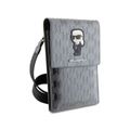 Karl Lagerfeld Saffiano Mono Ikonik Wallet with NFT Logo, Adjustable Shoulder Strap, Multiple Compartments, 3 Card Slots, Water Resistant - Silver