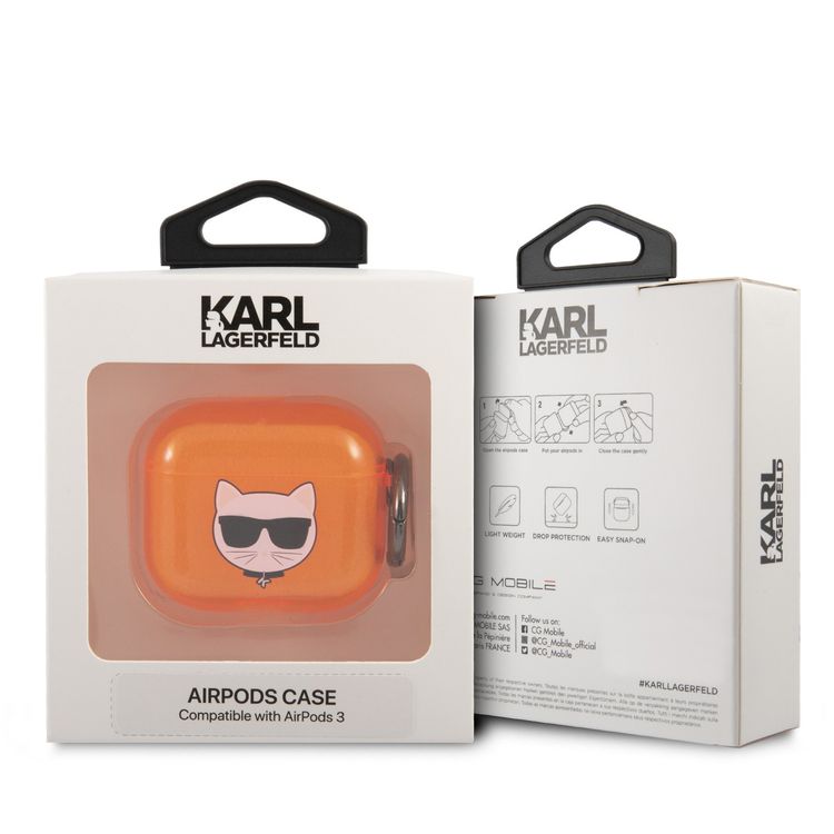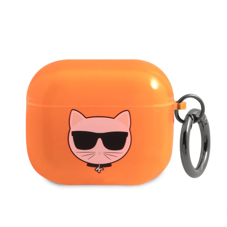 Karl Lagerfeld Choupette Fluo Case for Apple Airpods 3 with Accurate Cutouts, Wireless Charging Support, Easy Snap-on, Protection Against Scratches, Dirt and Minor Drops - Orange