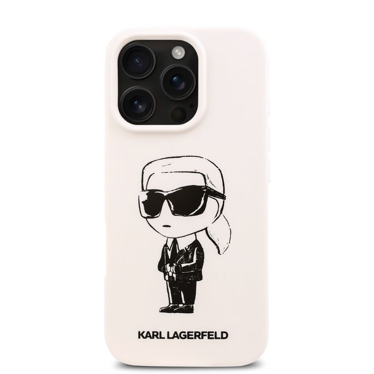 Karl Lagerfeld TPU Silicone Hard Case with ikonik Graffiti Logo for iPhone 16 Pro Max, Durable Material, Comfortable and Secure Grip, Lightweight and Slim - White