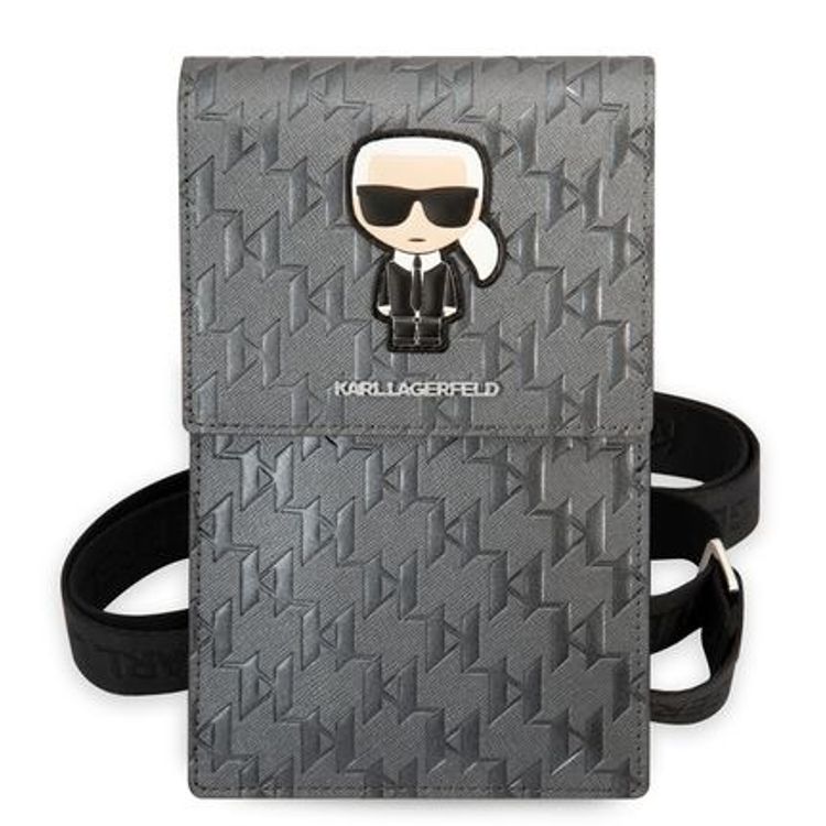 Karl Lagerfeld Wallet with Ikonik Mongram Logo and Patch Design - Gray