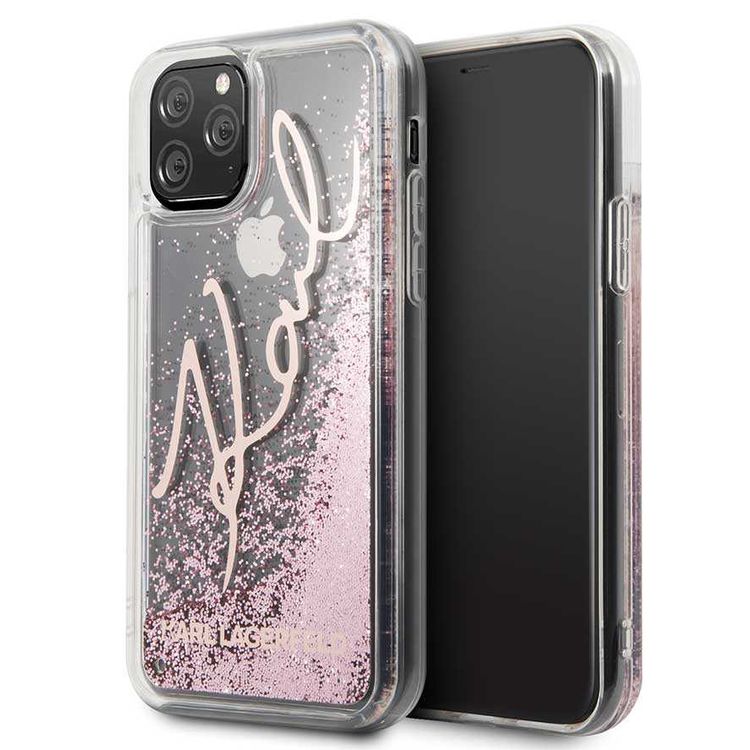Karl Largefeld Transparent Glitter Signature For iPhone 11 Pro - Rose Gold
