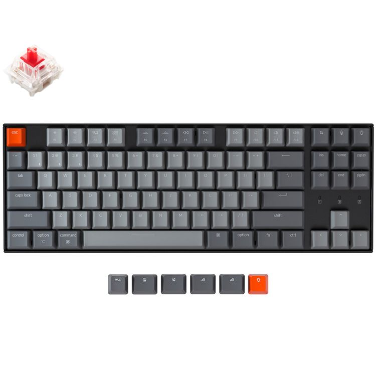 Keychron K8 87 Gateron Mechanical Keyboard with RGB and Red Switch/White LED Backlit/Wired USB, Bluetooth Computer Keyboard - Black