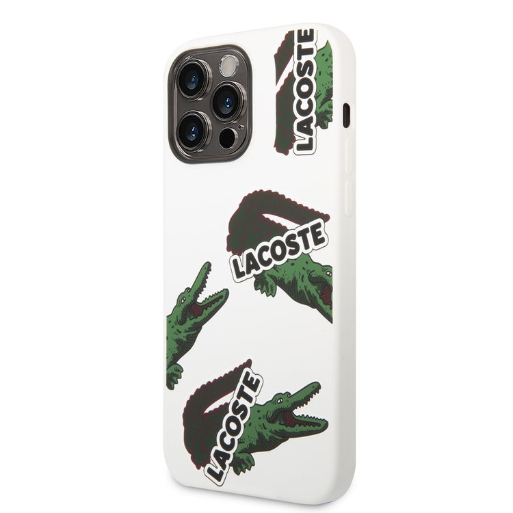 Lacoste Hard Case Liquid Silicone / Microfiber Allover Pattern Compatible with iPhone 14 Pro Max - White