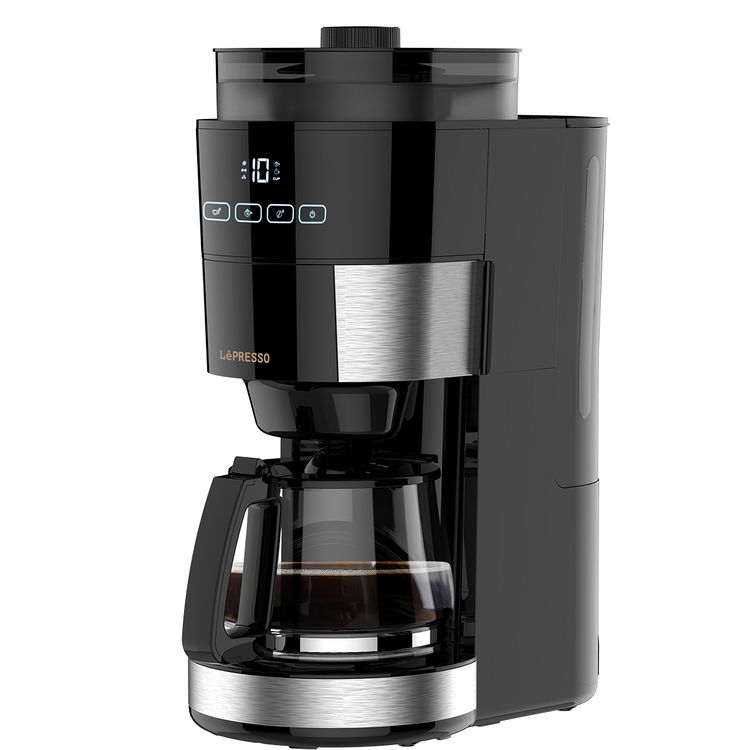 Lepresso Coffee Brewer with Built-in Bean Grinder, Removable Filter & Funnel, Detachable Water Tank, Adjustable Intensity, 1000W Rated Power, 35 Minutes Keeping Warm - Black